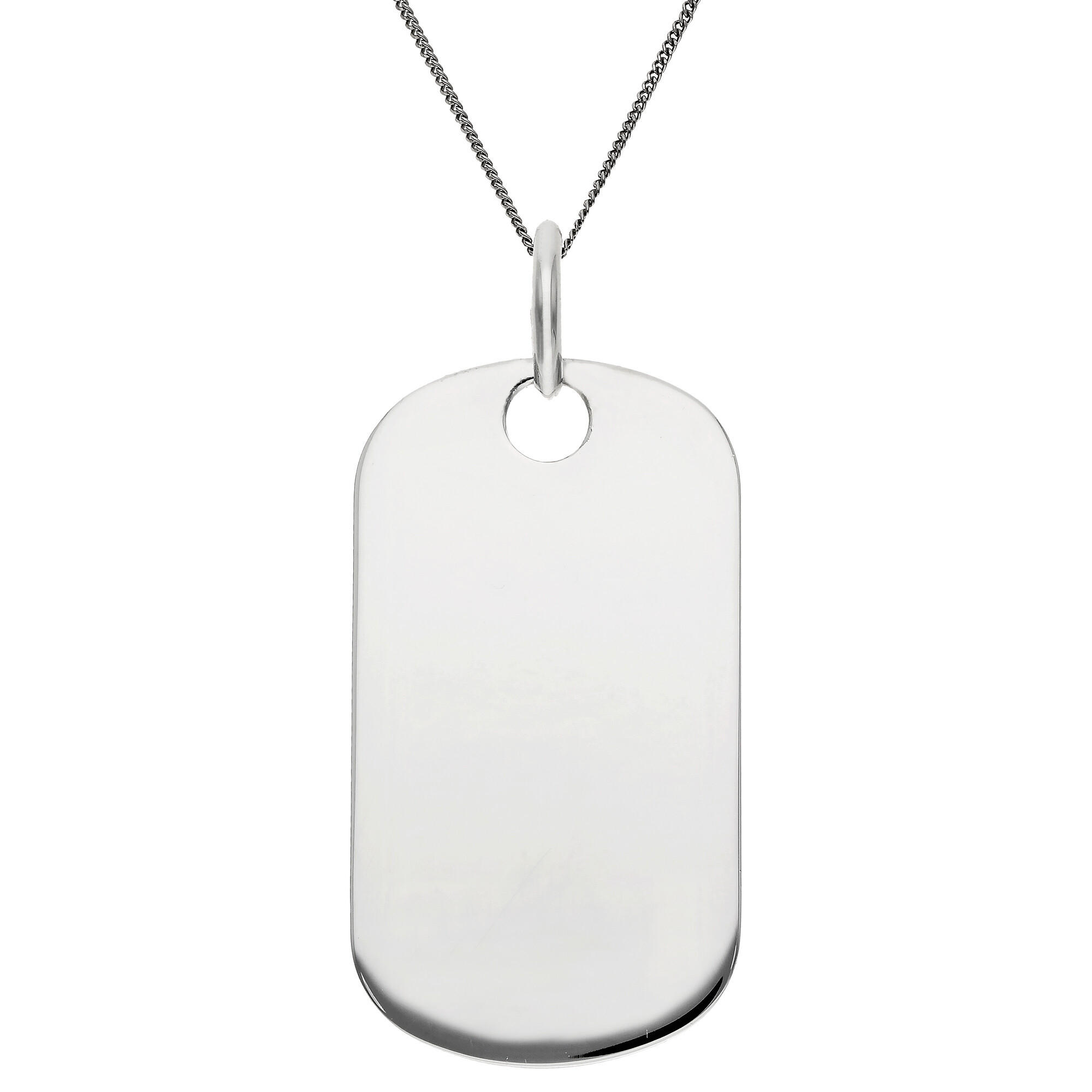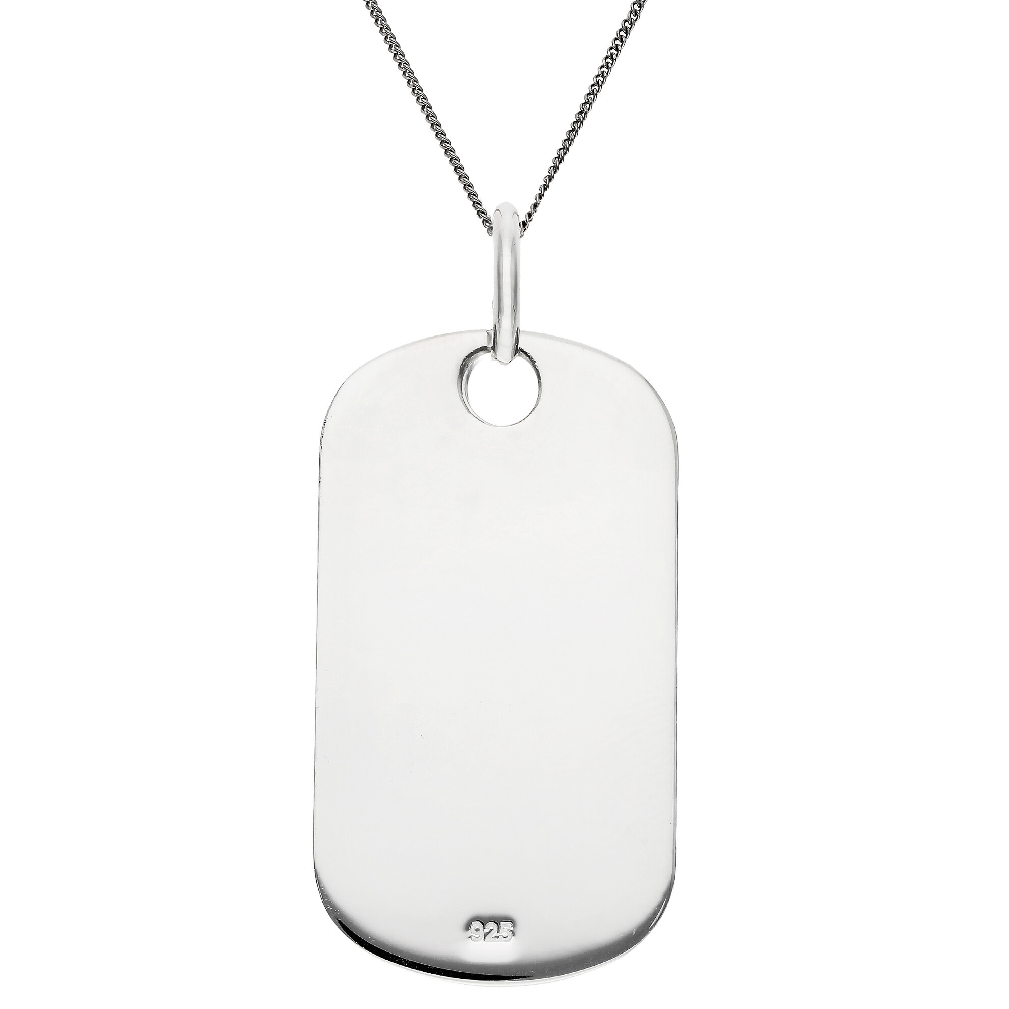 This sterling silver dog tag pendant offers a timeless and understated style with endless personal potential. Designed as a simple polished silver tag, it provides the perfect blank canvas for engraving. Whether you choose a name, initials, special date or meaningful message, this pendant becomes a one of a kind keepsake that can be worn close to the heart.