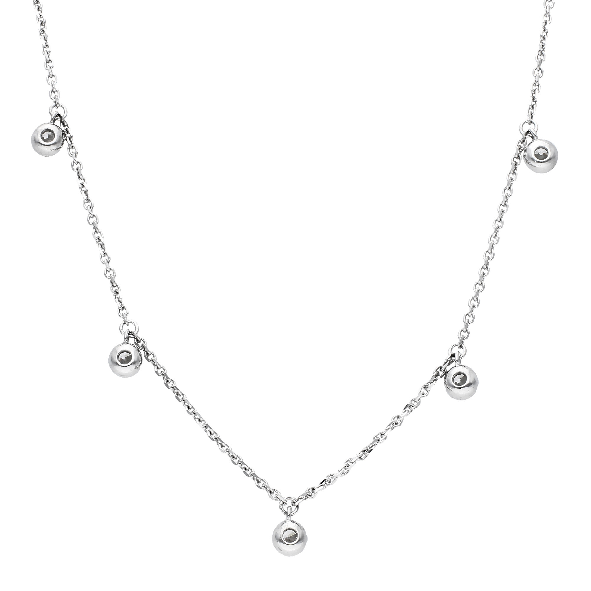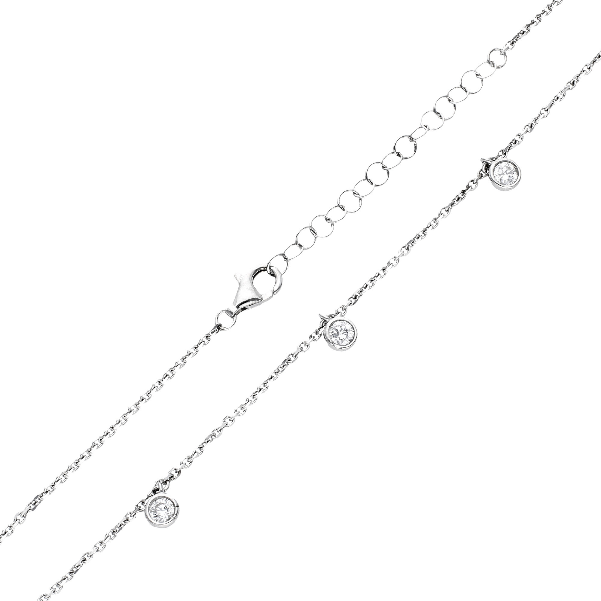 Be on Trend with this must-have Sterling Silver Necklace, featuring glimmering Drop Cubic Zirconia Charms hanging from the feminine filed trace chain. Wear yours day or night for never-ending style and glamour.