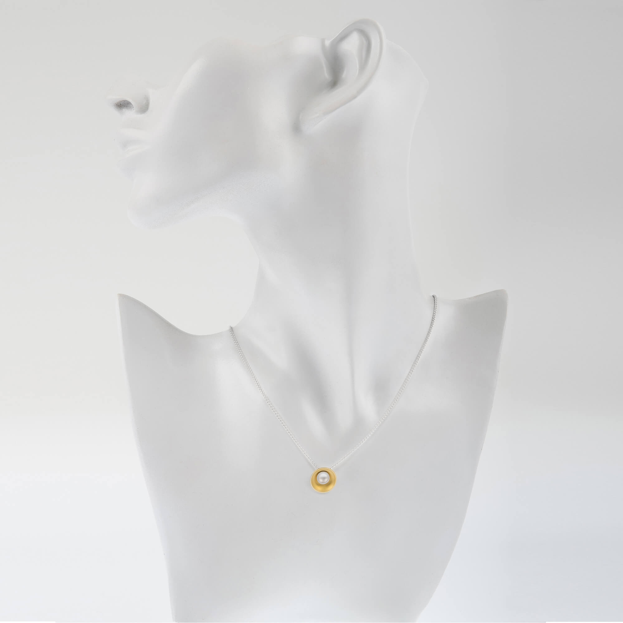 This exquisite piece is suspended from an adjustable sterling silver Spiga chain, allowing you to choose between 16 and 18 inches for the perfect fit. The combination of brushed textures and the contrasting gold and silver tones makes this pendant a versatile accessory, ideal for elevating any outfit.