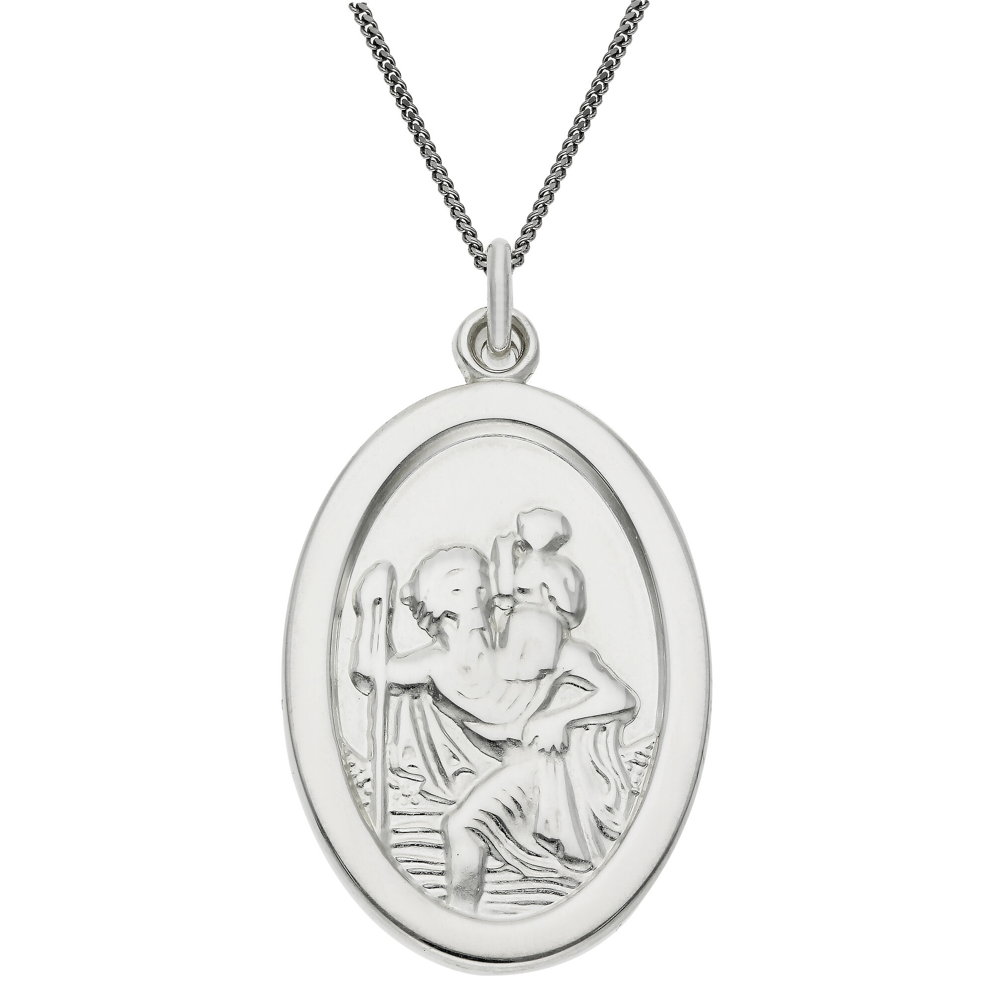 Celebrate timeless craftsmanship with this Sterling Silver Oval St Christopher Pendant, a meaningful symbol of protection and guidance. Crafted from high-quality sterling silver, the oval design showcases a detailed depiction of St Christopher, known as the patron saint of travellers. The reverse of the pendant is left plain, offering the perfect canvas for a personalised engraving, such as a name, date, or special message.