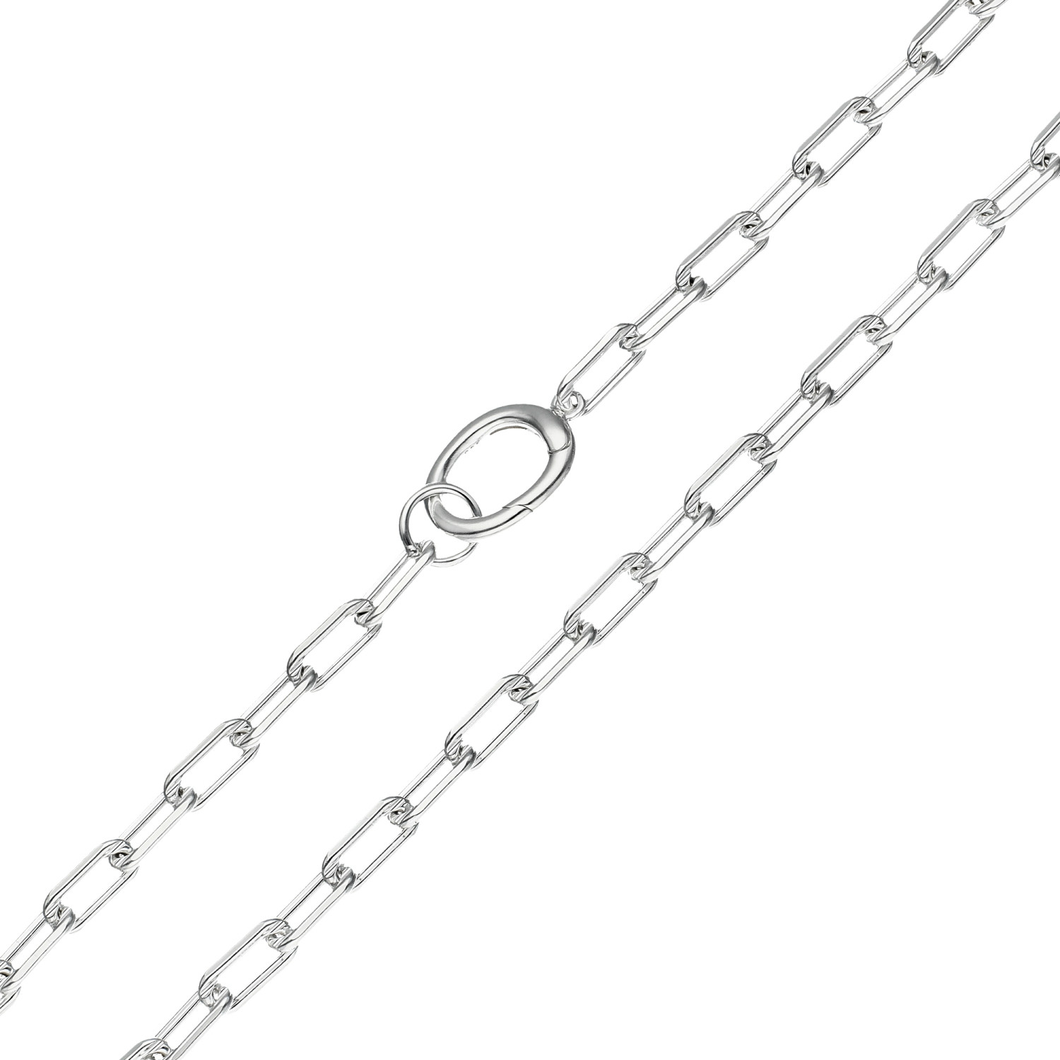 Elevate your jewellery collection with this elegant sterling silver chain necklace, designed to combine versatility and style. Featuring open rectangular links, this necklace provides a modern and minimalist aesthetic that effortlessly complements any outfit. Its unique design includes a catch, allowing you to attach your favourite charm and personalise your look with ease.