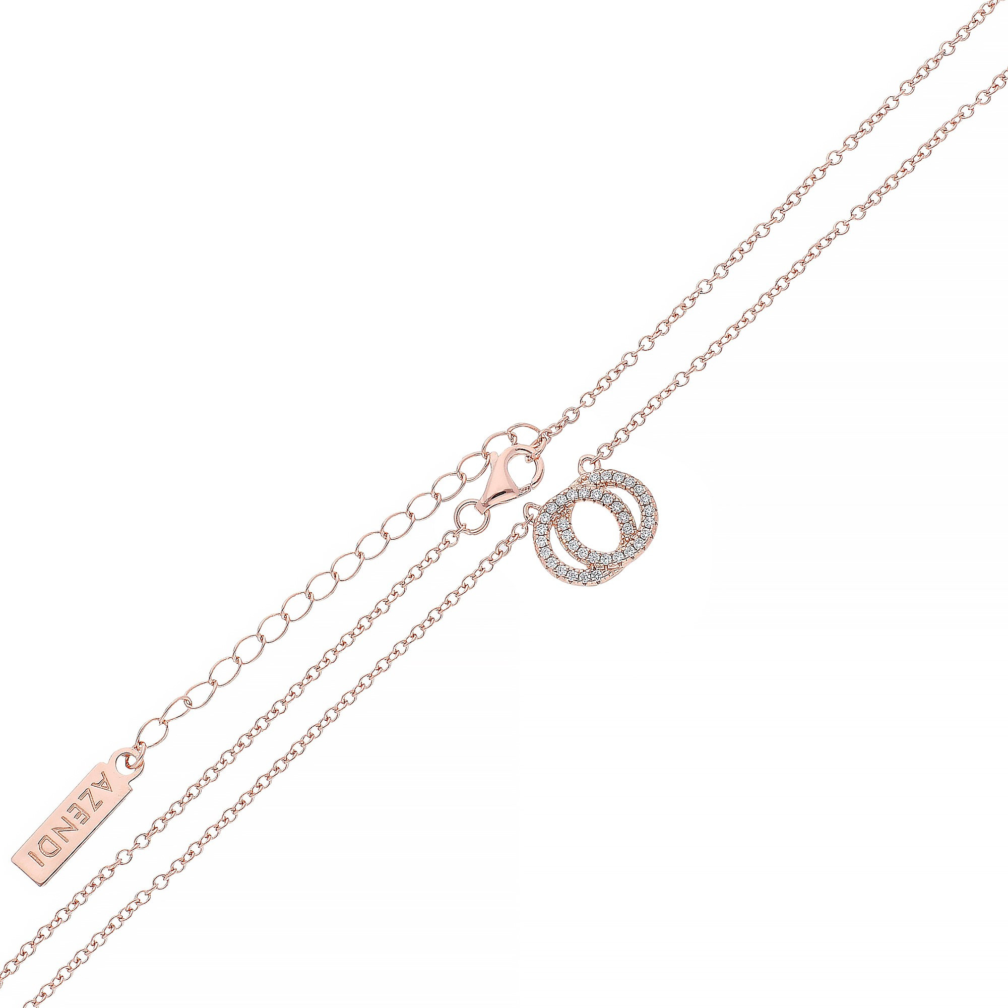 Add a touch of modern elegance to your jewellery collection with this stunning Cubic Zirconia and Rose Gold Plated Sterling Silver Necklace. Featuring two interlocking circles, beautifully plated in warm rose gold and adorned with sparkling cubic zirconia, this necklace offers a chic and timeless design.