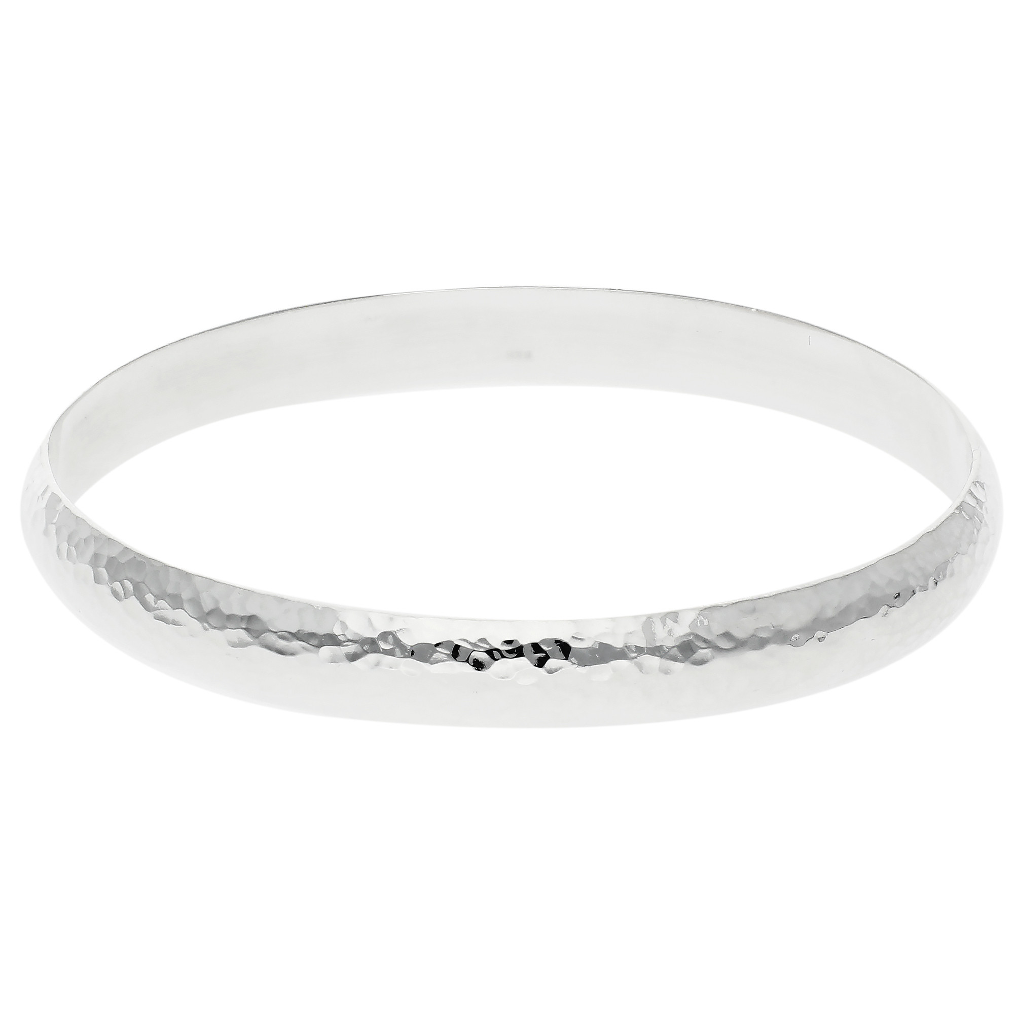 This stunning Sterling Silver Bangle offers a beautiful blend of traditional craftsmanship and contemporary style. Crafted from solid sterling silver, this ladies' bangle features an exquisite hammered finish that enhances its natural lustre and texture. The unique surface reflects light beautifully, making it a captivating accessory for any occasion. Whether worn alone for a subtle statement or stacked with other bracelets for a bold look, this bangle is versatile enough to suit any style preference. It's an elegant choice for those who appreciate jewellery that combines aesthetic appeal with lasting quality.