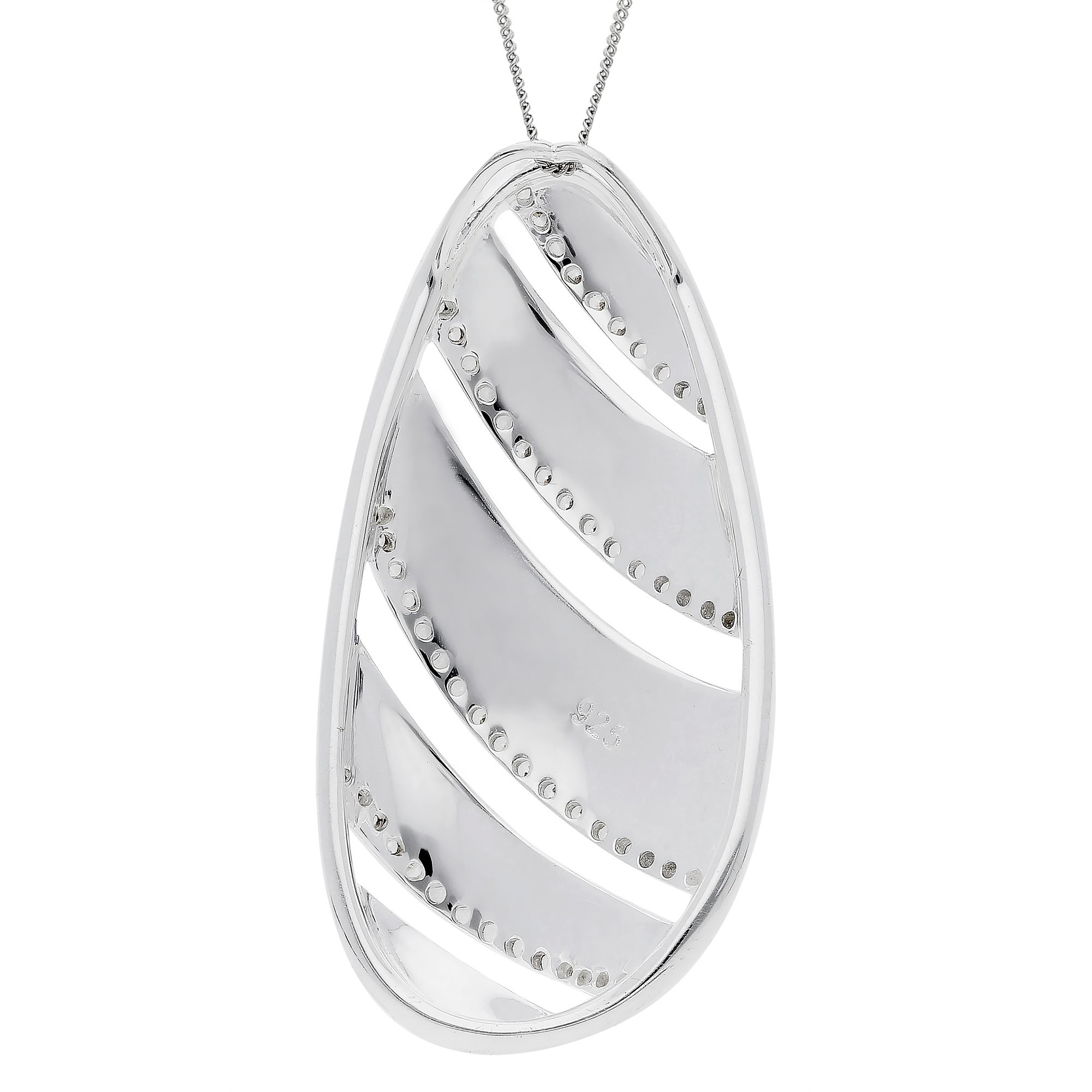 Add contemporary elegance to your jewellery collection with this Cubic Zirconia and Sterling Silver Pendant. Featuring an irregular oval shape, the pendant is crafted with a unique design of silver strips, accented by sparkling cubic zirconia along the edges. The interplay of modern lines and shimmering stones creates a striking and sophisticated look.