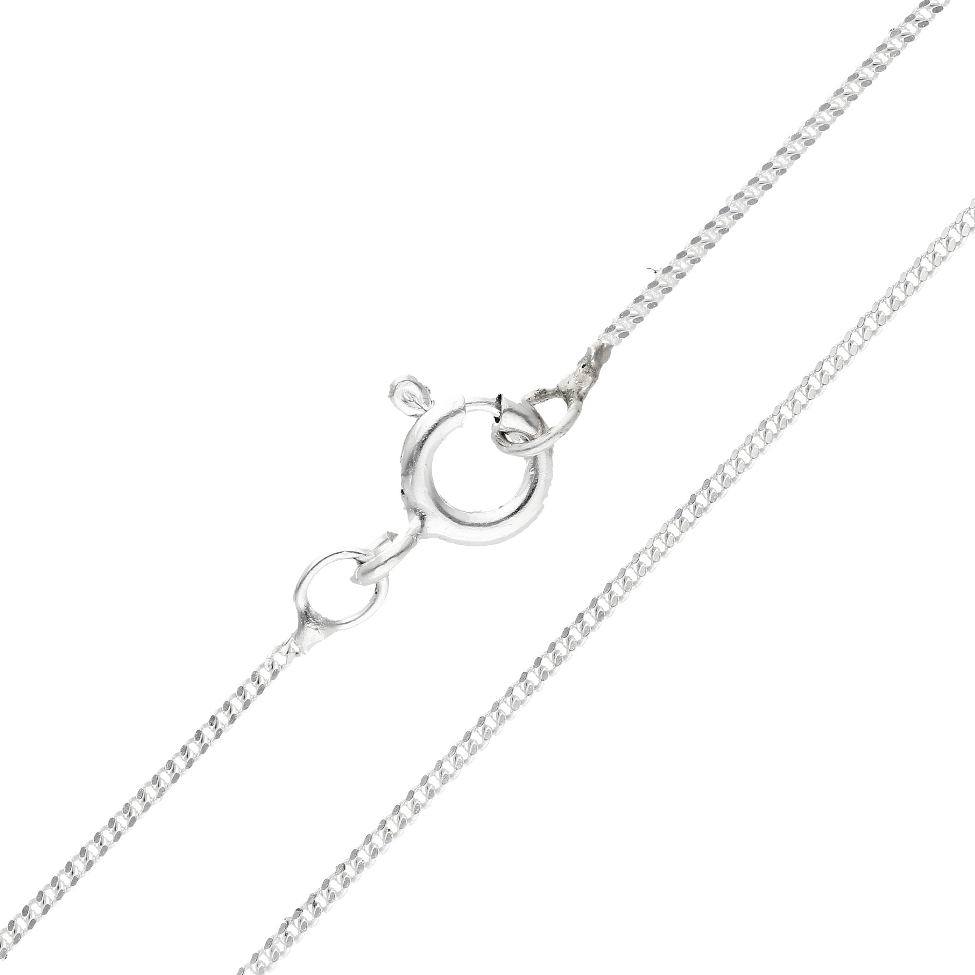 The Curb Chain length is 18", the standard length for most necklines. Enquire for lead times on other chain lengths.