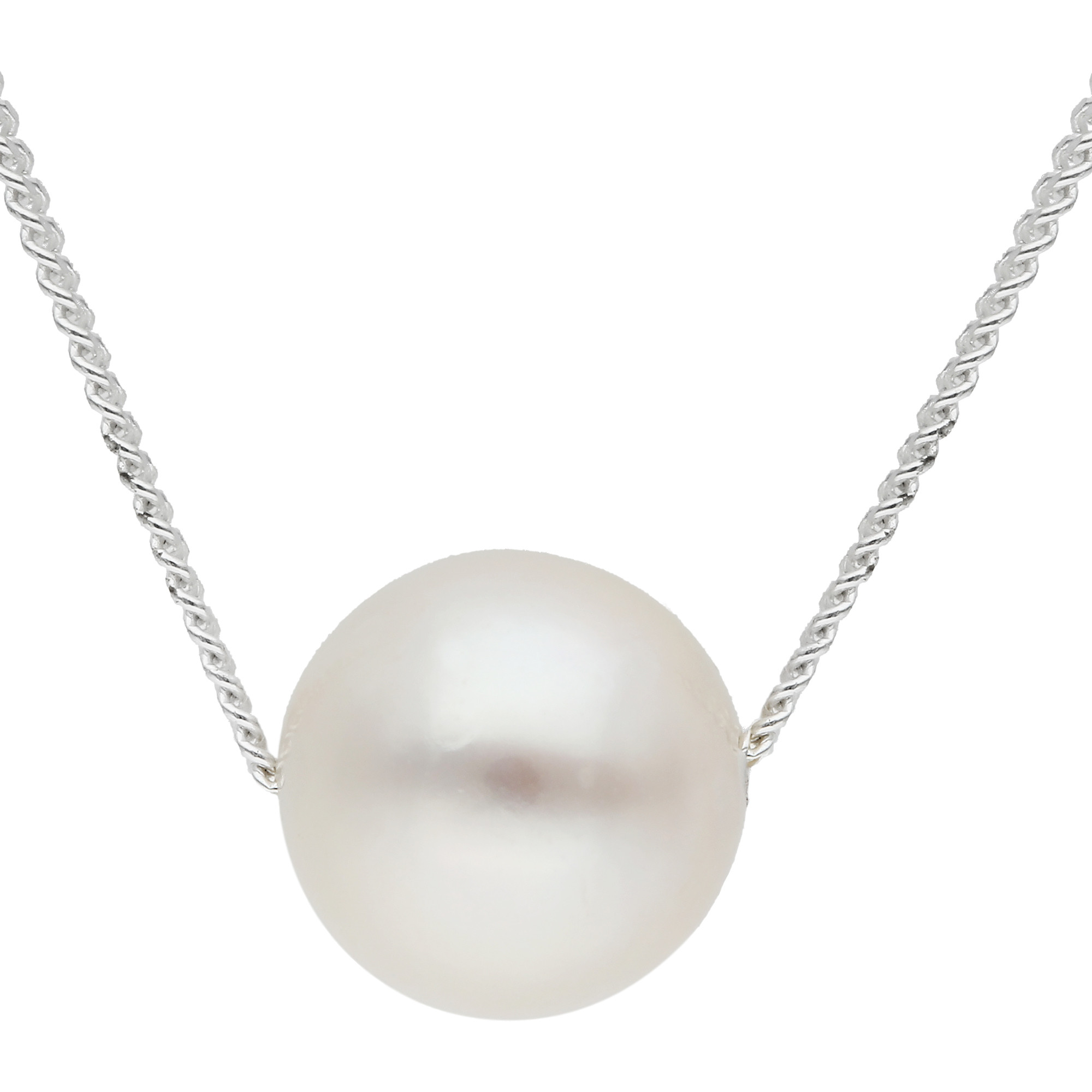 Be on trend with this sweet Round 7mm White Cultured River Pearl Pendant Necklace. Crafted beatifully from 925 Sterling Silver, this Ladies Necklace features a pearl bead that can slide up and down the Curb Chain.