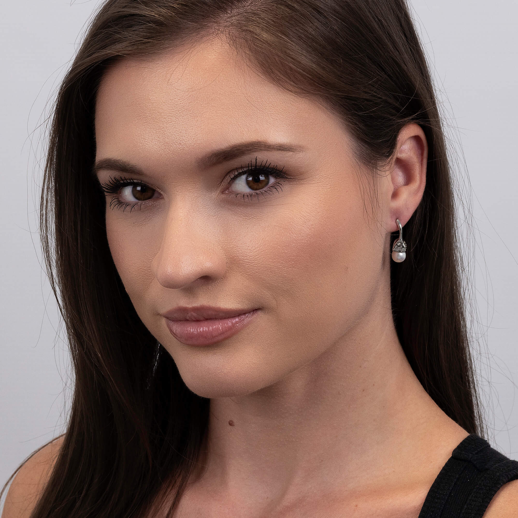 Inspired by the delicate yet resilient snowdrop flower, these Sterling Silver Pearl Drop Earrings from Fei Liu’s Snowdrop Collection offer a striking blend of elegance and strength. Crafted in sterling silver with a rhodium vermeil finish, each earring features a smooth freshwater pearl paired with a brilliant cubic zirconia accent. The graceful curves of the design capture the pose of a snowdrop in bloom, symbolising the transition from winter to spring. The contrast between the soft lustre of the pearl and the bold sculptural setting creates a look that is both feminine and contemporary. These earrings make a beautiful statement whether worn for a special occasion or to elevate everyday style. A perfect gift for someone who appreciates refined design with an edge, this pair is a standout addition to any jewellery collection. Delicate yet bold, these earrings bring a fresh and modern twist to classic pearl jewellery.
