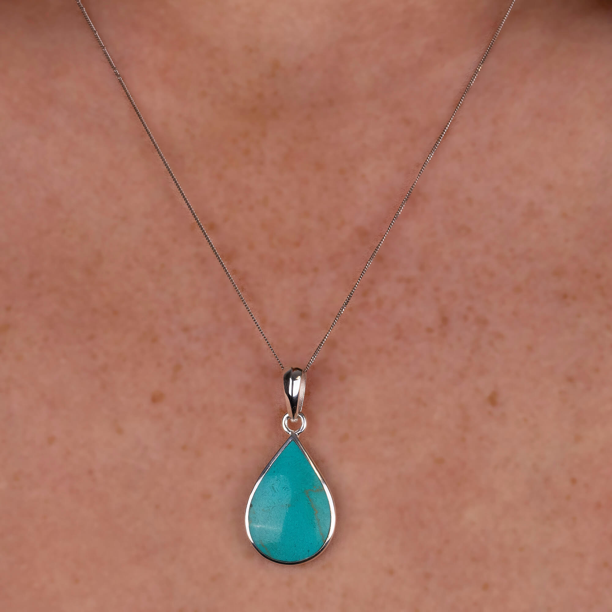 Perfect for those who adore unique, eye-catching jewellery, this turquoise pendant makes an excellent gift for loved ones or a splendid treat for yourself. Its timeless design ensures it remains a cherished part of your jewellery ensemble for years to come. Embrace the allure of turquoise with this stunning tear drop pendant.