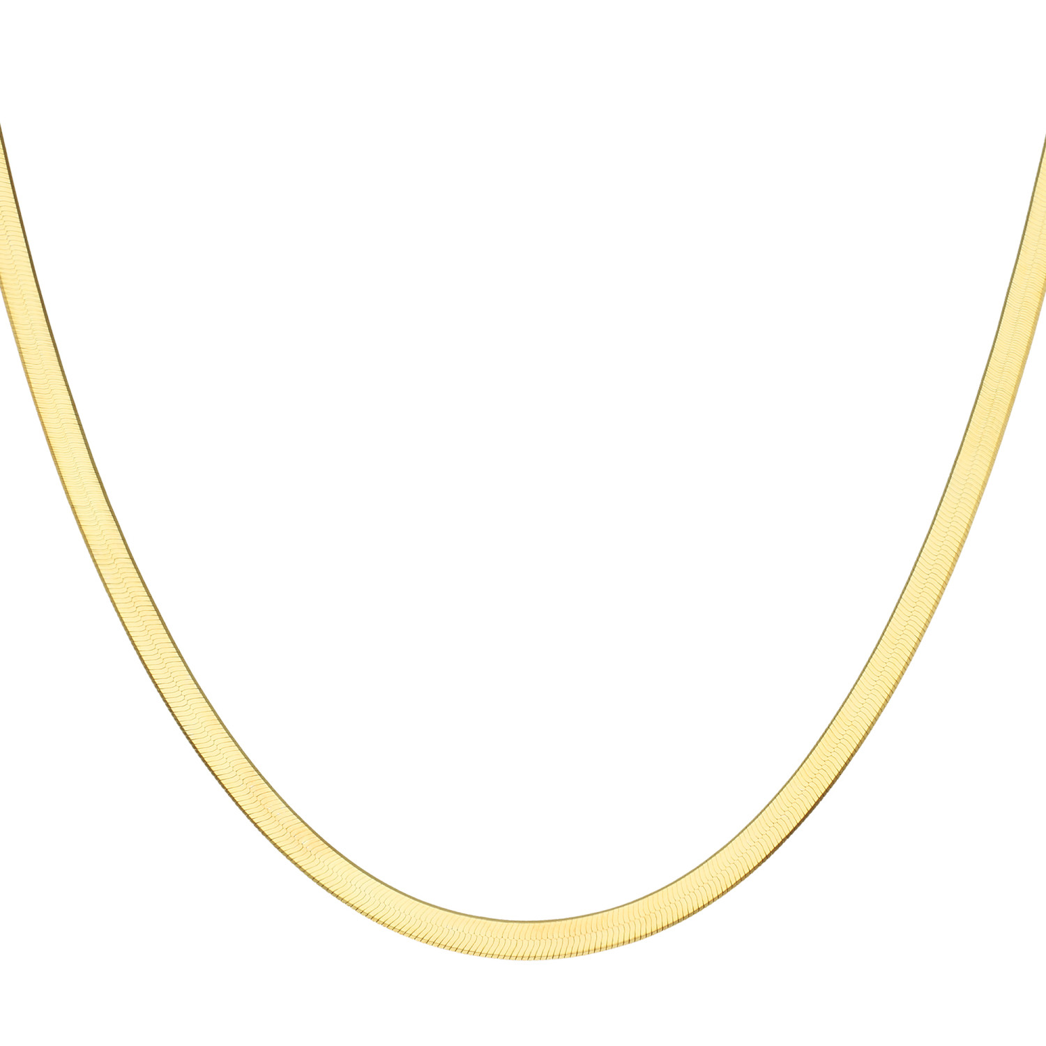 Yellow Gold Plated Flat Herringbone Chain Necklace