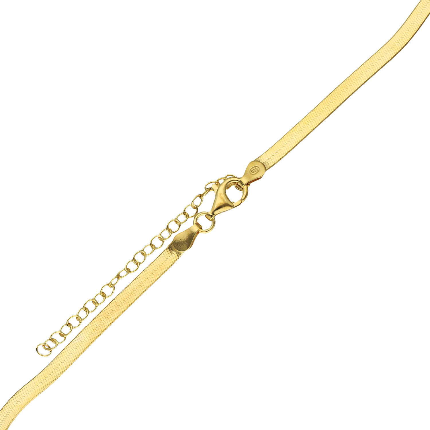 With the trend of layering chains and necklaces of different lengths having no end in sight, this flat herringbone chain necklace will make a fantastic addition to your chain collection. Crafted in sterling silver with a yellow gold plating and featuring an extendable length of 40cm-46cm, this chain will complete any outfit and can be worn from day to evening by combining it in numerous ways with other chain lengths or wearing alone.